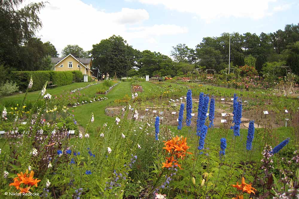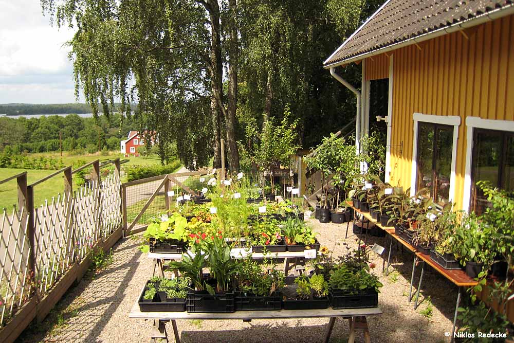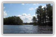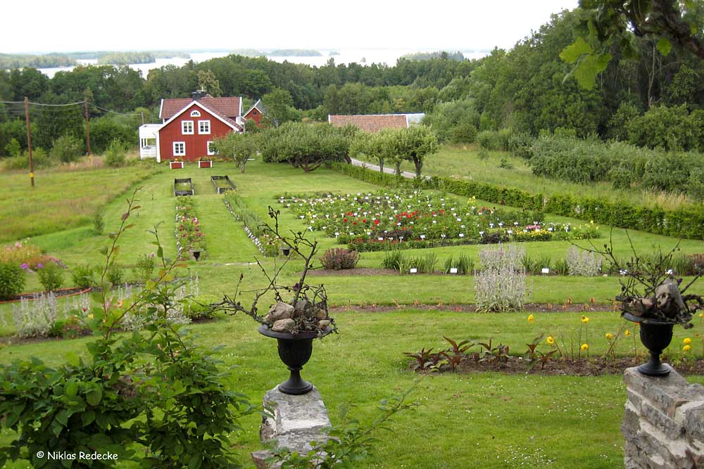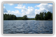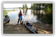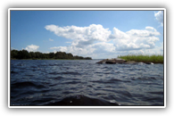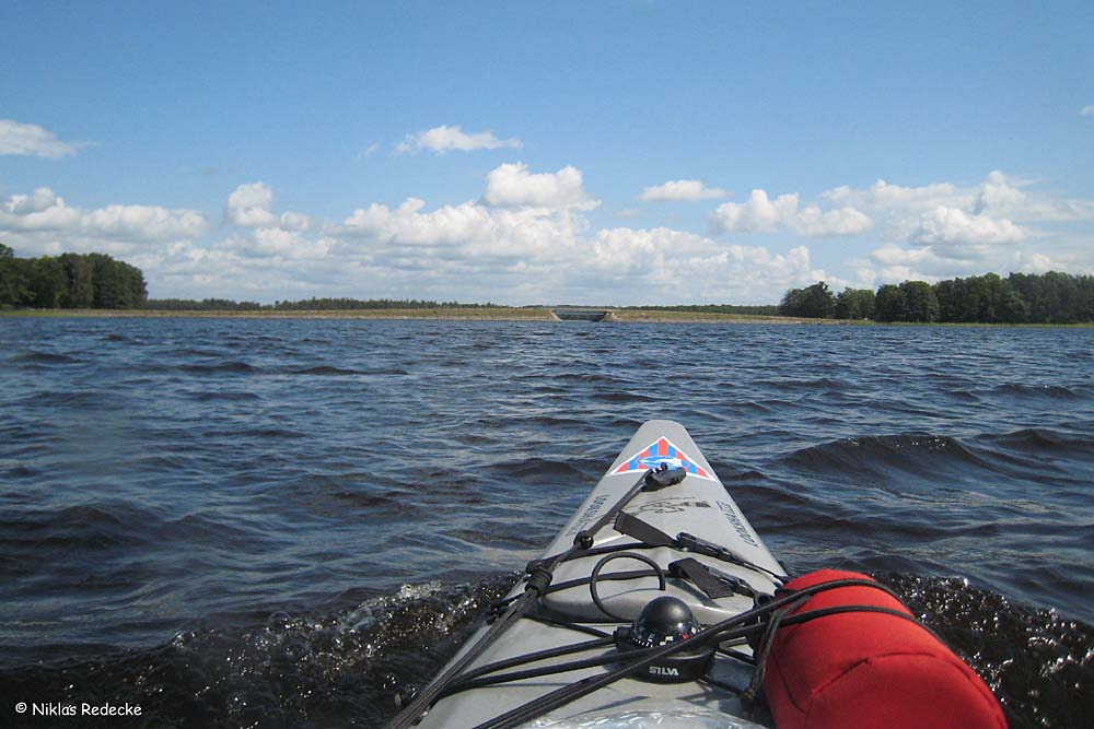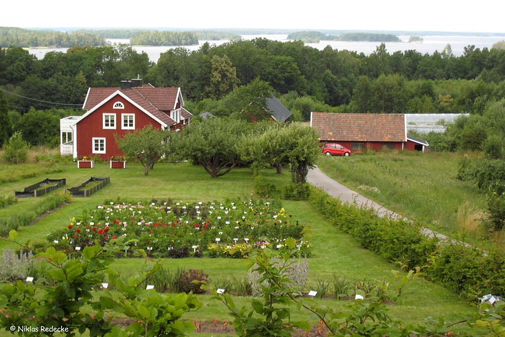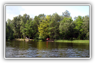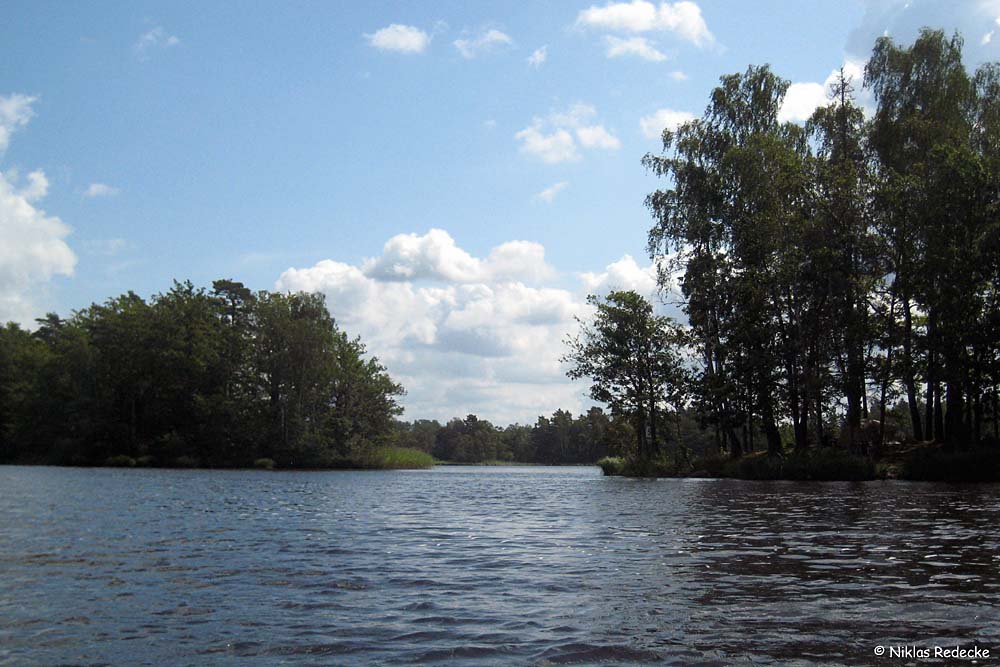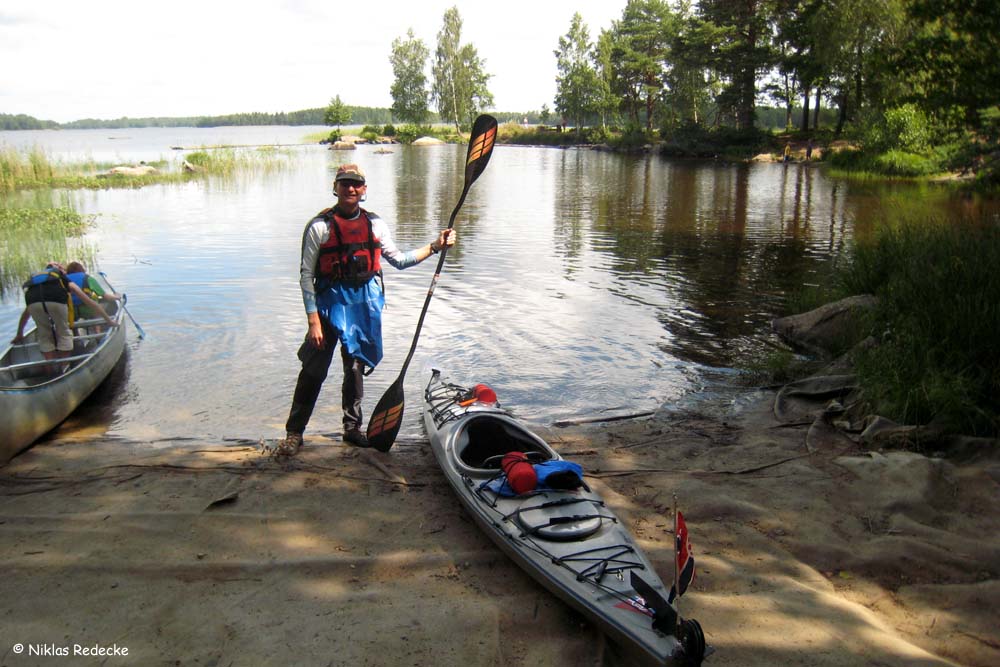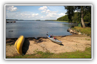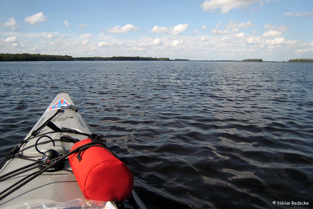 Åsnen, der zweitgrößte See von Småland liegt 30 km südlich von Växjö und rund 100 km westlich von Kalmar; damit ist er aus Deutschland noch gut erreichbar. Der See ist durch große und kleine Inseln, zahlreiche Buchten und Arme stark gegliedert. Für unseren Aufenthalt am Åsnen haben wir den Campingplatz Getnö Gård ausgewählt, den wir zufällig während einer früheren Reise kennen gelernt haben. Getnö ist ein 15 km² großes privates Naturschutzgebiet im Herzen des Sees Åsnen und gehört zu einer der größten Inseln des 155 km² großen Sees. Auf diesem ehemaligen Gutshof, der 1320 erstmals erwähnt wurde, hat sich die Familie Olsson ein kleines Paradies geschaffen. Mit seiner einzigartigen Flora und Fauna bietet Getnö eine Vielzahl von Möglichkeiten der Natur nahe zu kommen. Getnö Gård hat einen naturbelassenen Campingplatz mit 150 Stellplätzen für Wohnwagen, Wohnmobile oder Zelte. Viele davon mitten in der Natur unter Bäumen oder auf kleineren Wiesen. Der Campingplatz liegt direkt am Wasser und verfügt über einen Sandstrand, Badestege und Bootsanlegestellen. Als Besonderheit möchte ich noch die Feuerstellen nennen. Auf fast allen Stellplätzen findet man alte Lkw-Felgen, die auf Haufen von faustgroßen Kieselsteinen gelagert sind. Abends brennen dann zahlreiche Feuer und sorgen für Gemütlichkeit, sofern man nicht im Qualm vom Nachbarn sitzt. Damit sich niemand an den zahlreichen Bäumen vergreift, wird Feuerholz in Säcken vom Platzbetreiber angeboten. Durch die Lage auf einer Insel, die man nur über eine Brücke erreichen kann, ist der Platz hervorragend als Basisstation für Kanutouren in alle Himmelsrichtungen geeignet. Eine Wasser- und Radwanderkarte im Maßstab 1:50.000 mit dem Åsnen und der näheren Umgebung habe ich an der Rezeption gekauft. Sie ist gut für die Tourenplanung brauchbar, da alle für Kanuten wichtigen Punkte hervorgehoben sind. Ein Koordinaten-Gitter erleichtert den Einsatz von GPS-Geräten. Zum Schutz der reichhaltigen Vogelwelt wurden auf dem Åsnen zahlreiche Inseln und Nistgebiete unter Vogelschutz gestellt. Damit die Brut und Aufzucht der Jungen nicht durch Kanuten gestört werden, besteht ein Zutrittsverbot in der Zeit vom 1. April bis zum 15. Juli. Diese Gebiete sind mit gelben Schildern gekennzeichnet und auch in den Wasserwanderkarten markiert. Beim Vorbeifahren ist ein gebührender Abstand (möglichst mehr als 100 m) einzuhalten. Die nachfolgend beschriebene Tour bin ich als sportliche Tour solo gepaddelt. Sie war mit 35 km für ein stehendes Gewässer schon recht lang, eine Zwischenübernachtung auf dem Campingplatz Kärrasand wäre aber problemlos möglich. Von der Anlegestelle des Campingplatzes bin ich zunächst in Richtung Norden gepaddelt, um mich rechtzeitig vor Erreichen des Vogelschutzgebietes auf der Insel Södra Aspö nach NO zu wenden und kurze Zeit später die schmale Durchfahrt zwischen den Inseln Sirkön und Getnö zu passieren. An der Nordspitze von Getnö liegt ein lang gezogener Kanurastplatz, der trotz seiner wunderschönen Lage nur schwach besucht war. Linker Hand lasse ich die kleine Insel Lindholmen liegen und fahre auf die Südspitze von Sirkön zu. An Backbord sehe ich noch den Familiencampingplatz Rotahults mit kleinem Sandstrand, bevor ich die Südspitze umrunde und auf die Autobrücke zuhalte, die mit einem langen Damm die Insel Sirkön mit dem Festland verbindet. Unter der Brücke her paddele ich in den östlichen Teil des Åsnen und setze meinen Weg entlang des rechten Ufers für ca. 2 km fort, bevor ich nach rechts in den Fårarmsund einbiege. Nach 1,5 km lasse ich die Insel Mossö rechts liegen und fahre in Richtung SSO auf den Aussichtspunkt Lunnabacken zu. Nach einigem Suchen finde ich auch eine Stelle, wo ich aussteigen und mein Boot für eine Besichtigung des Aussichtspunktes Lunnabacken mit Heimatmuseum und des Schaugartens Korrebo zurücklassen kann. Lunnabacken bietet einen weiten Ausblick über den See Åsnen. Die Kuppe des Hügels liegt 187 m über dem Meeresspiegel und 48 m über dem See. Auf dem Hügel liegt das Heimatmuseum von Urshult mit dem ältesten Gebäude der Gemeinde aus dem Jahr 1909. Der Schaugarten Kurrebo gilt als Kronobergs schönster Garten. Hier kann man herumspazieren und die schönen Anlagen mit rund 1.000 verschiedenen Arten von Stauden, Rosen, Kletterpflanzen, Nadelgehölzen, Büschen und Bäumen genießen. Im Geschäft werden Pflanzen, Samen und verschiedene andere Gartenprodukte verkauft. Im Hinblick auf die Transportkapazität meines Bootes ist die Versuchung gering, mich hier einzudecken. In Kurrebo zeigen auch Gärtnereibetriebe ihre Produkte, hier befindet sich u.a. ein Schaugewächshaus. Der Schaugarten Kurrebo bietet auch eine bezaubernde Aussicht über den See Åsnen, und die Umgebung ist bekannt für ihr sehr schönes Biotop. Kurrebo liegt mitten im småländischen Apfelanbaugebiets, wo man die Apfelplantage “Eden” besichtigen kann, die als Wiesenobstplantage Anfang dieses Jahrhunderts angelegt wurde. Im Café Kurrebo habe ich mir erst einmal Kaffee mit selbstgebackenem Kuchen geholt und mir auf der Terrasse eine Kaffeepause mit Blick auf den See gegönnt. Wer möchte kann hier auch in einem der neun Betten des Vandrarhem übernachten. Dieser Platz ist so schön und der Aufenthalt reinster Balsam für meine Seele; der Abschied fällt mir wirklich schwer. Zurück im Boot wende ich mich nach links und folge dem Ufer bis zum Campingplatz Kärrasand. Ich checke diesen kurz für spätere Touren und folge dem Uferverlauf weiter, bis ich den Fårarmsund wieder erreiche. Bis zur Südspitze der Insel Sirkön paddele ich nun den Hinweg in umgekehrter Richtung, setze meine Fahrt dann aber in Richtung SSW noch drei Kilometer fort, bis ich an der Südspitze der Insel Igelön vorbei gezogen bin und den Kanurastplatz am linken Ufer entdecke. Nun wende ich mich nach Westen und halte auf den Damm zu, der die Insel Getnö mit dem Festland verbindet. Vorsichtig paddele