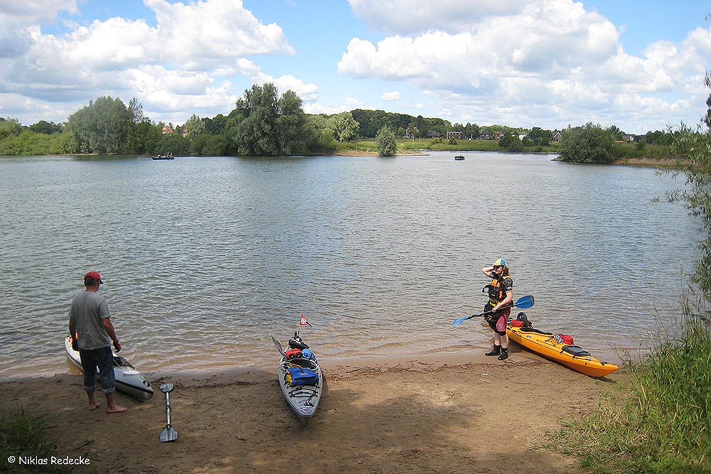 Auf der rechten Flussseite bei Dieren (km 912) finden wir eine schöne Pausenstelle - leider ohne Café.