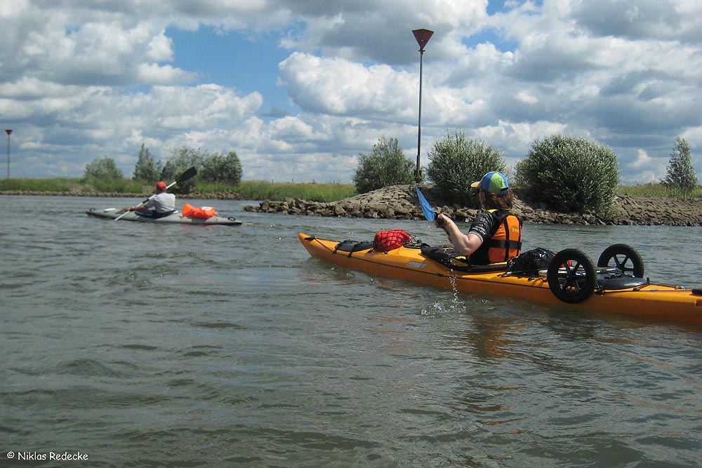 Stömung und Wind sind mit uns. An den Buhnen bilden sich häufig Strudel.