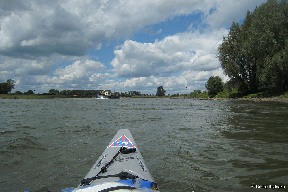 Vor der Bronkhorster Fähre geht es lange geradeaus, bevor sich die Ijssel zu einer großen 180-Grad-Schleife nach Osten wendet.