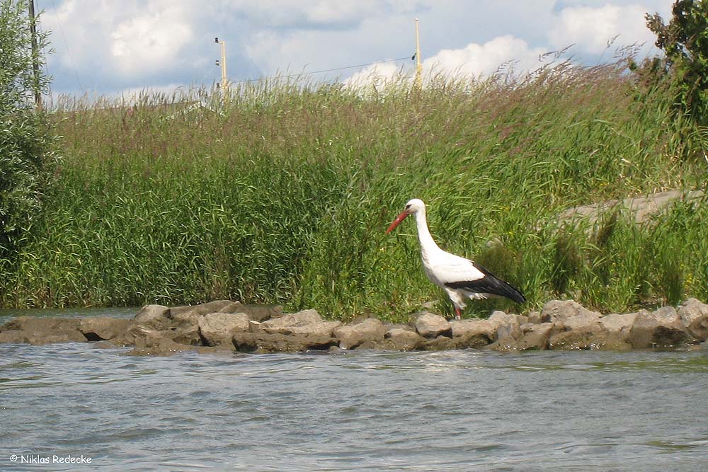 Unterwegs sehen wir zahlreiche Wasservögel wie Nil- und Canadagänse, den Austernfischer und den bei uns selten gewordenen Schwarzstorch aus nächster Nähe.