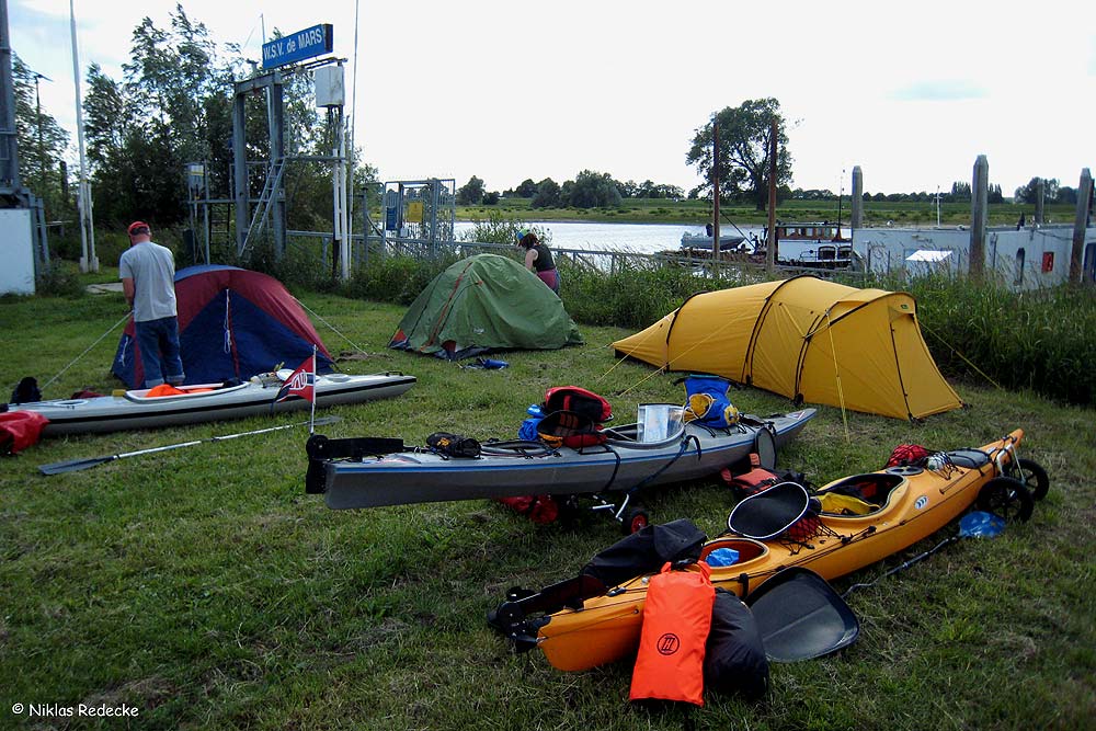 Vor den Toren des WSV "de Mars" (km 930) schlagen wir abends unser Lager auf.