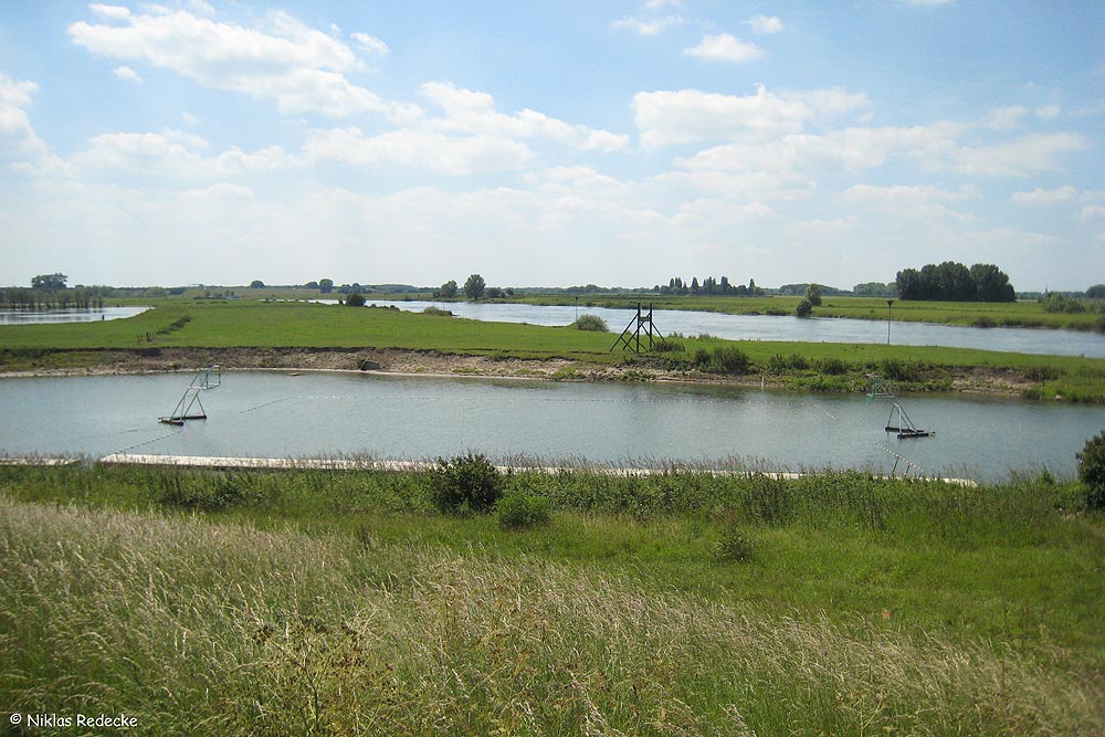 Der Steg und ein Kanupolofeld befinden sich in einem rechten Seitenarm der Ijssel.