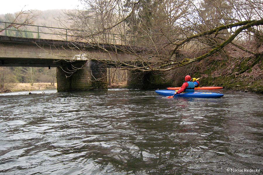 Ulli und Hans im Langboot auf der Suche nach dem besten Weg.